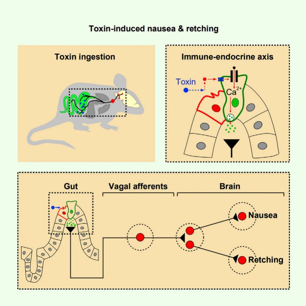 The gut-to-brain axis for toxin-induced defensive responses