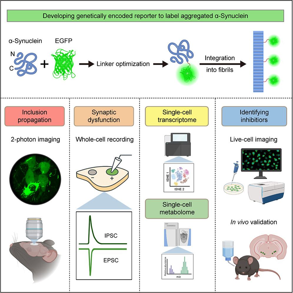 Genetically encoded fluorescent reporters to visualize α-synuclein pathology in live brain